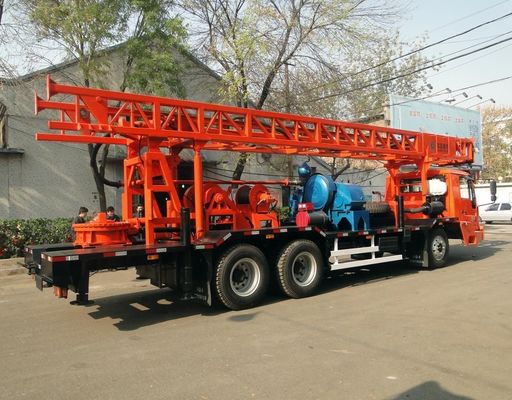 2. Giàn khoan được trang bị khung gầm xe tải đặc biệt dạng SINOTRUK 6 * 4, và hộp chuyển, ổ đĩa chính, hộp số, tời kép, bơm bùn, bàn quay, tháp khoan và hệ thống cấp dây thép đều được gắn trên khung gầm.